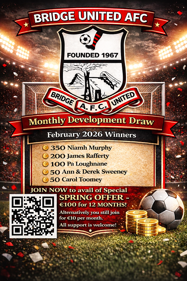 We are now offering a Special Spring Offer – €100 for 12 months membership in our Monthly Development Draw.
